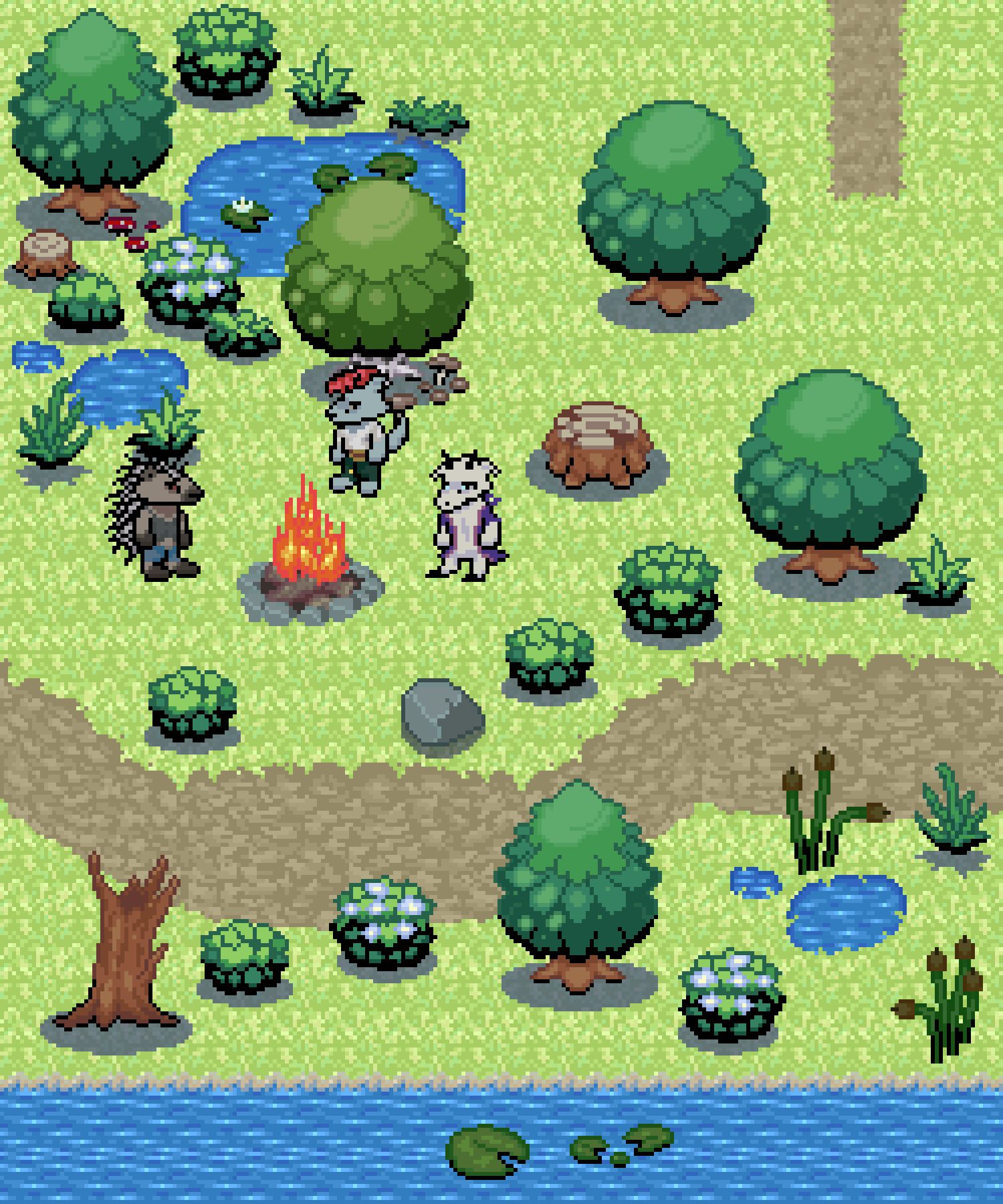 All assets and sounds were created by our team. Tim Sand doing the sick work on the soundtrack and sound effects, Rute @mightaswellchangeit doing stellar work on all the sprites, tiles, animations (no AI assets), the other two devs VG and Bruno working on coding, game design, AI etc.